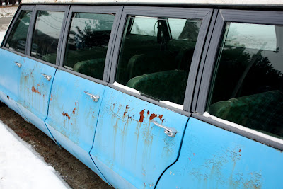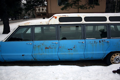 On the drive to Sugarloaf this morning, I noticed an eight door, sky blue Oldsmobile Toronado wagon on the side of the road. A combination of coffee, Iron Maiden, and the excitement of the season's first day of shredding barred me from pulling over. On the way back, we pulled over to snap some photos.