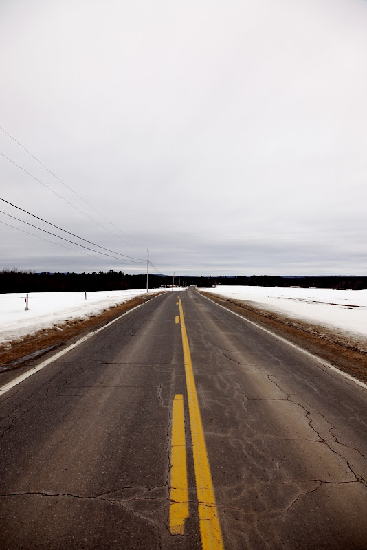 Aimlessly, I wander the cracked roads, listening to songs on repeat and measuring my trips in time, not miles traveled. I drive alone. Stopping often, I leave the car running as I skip across the road and into the snow. Through the lens of my camera, I try to capture my own private New England.